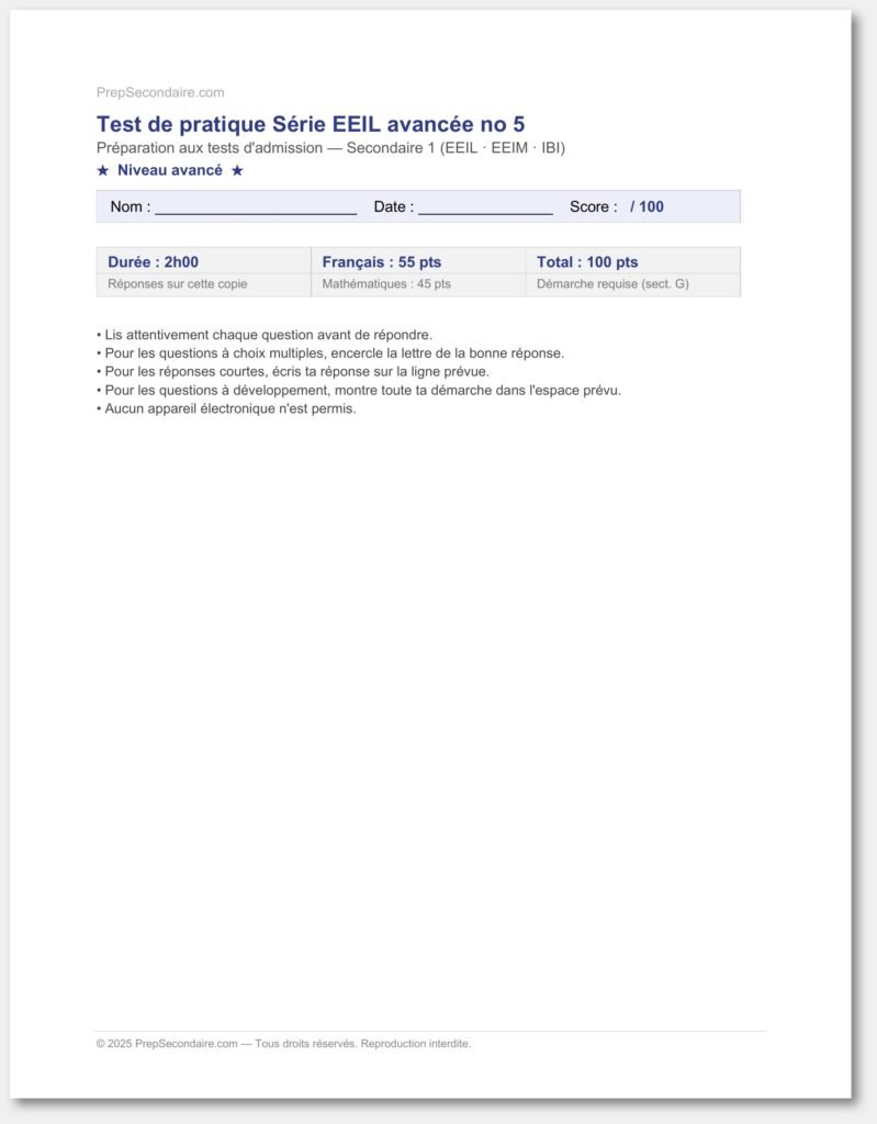 Test Secondaire 1 (Style International) Avancé IB1A005